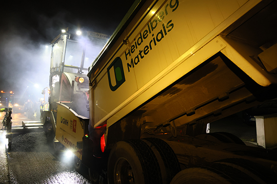 The asphalt was supplied by Heidelberg Materials’ nearby Allington plant and the work was carried out at night to minimise disruption for road users.